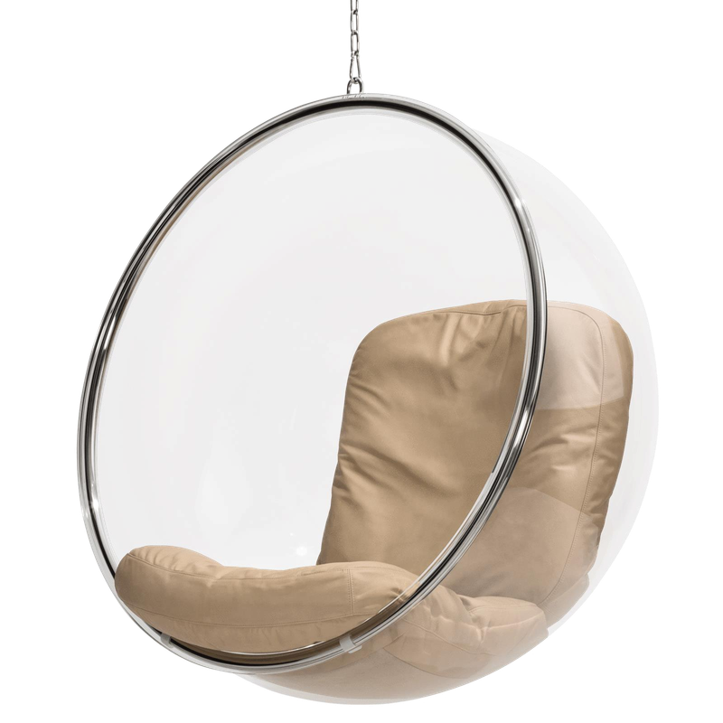 Bring a modern and relaxing vibe to your home with this Acrylic Bubble Swing , designed to float elegantly in any space. The crystal-clear acrylic shell paired with soft beige cushions creates a cozy, contemporary retreat perfect for lounging, reading, or simply unwinding in style.