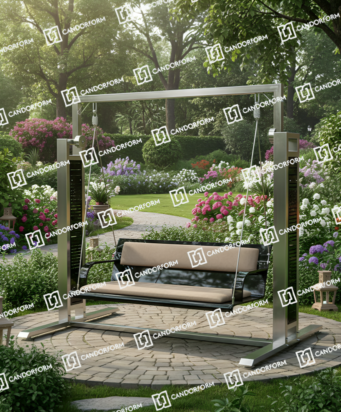 The Modern Outdoor A-Frame Swing Sofa with Cushioned Seating is a perfect blend of contemporary design, comfort, and durability, created to elevate any outdoor living space. Built on a strong A-frame structure, this swing sofa offers exceptional stability and a clean, modern silhouette that complements gardens, patios, balconies, and poolside areas. The sturdy frame is crafted to withstand outdoor conditions while maintaining its sleek appearance over time. Generously padded seat and back cushions provide superior comfort, making it ideal for relaxing, reading, or enjoying conversations with family and friends. The ergonomic seating design ensures proper support, while the smooth swinging motion adds a soothing, relaxing experience. Designed for both style and function, the swing sofa pairs minimal aesthetics with practical outdoor use. Its spacious seating accommodates multiple users comfortably, making it a standout centerpiece for outdoor décor. Easy to maintain and visually striking, this A-frame swing sofa transforms open spaces into inviting retreats with modern charm and everyday comfort.